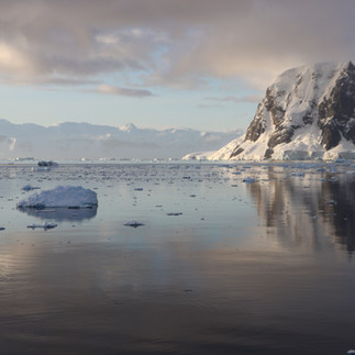 There was also a large gentoo penguin colony and many of the penguins walk along the human paths and we had to give way to let them waddle past. On returning to the zodiac to go back to the ship, the driver diverted so we could see a huge leopard seal lying on an iceberg. As we glided quietly past, it raised its head slightly to look at us then went back to sleep. Leaving the bay in the evening, the setting sun lit up the surrounding mountains in the most gorgeous pastel hues, reflected in the mirror-like sea.